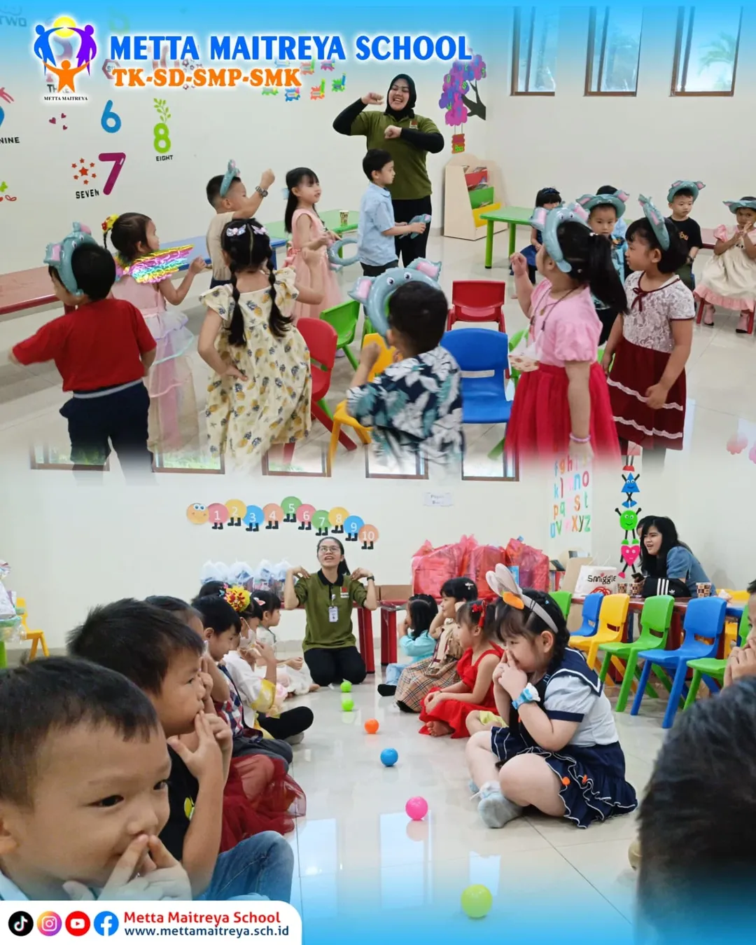 Birthday Celebration Periode I TK Metta Maitreya T.P. 2025/2026 dengan penuh sukacita merayakan ulang tahun Peserta Didik di bulan ini. Acara berlangsung meriah dengan doa, tiup lilin, potong kue, dan kebersamaan yang hangat antara anak-anak, guru, dan orang tua. Semoga para Peserta Didik selalu sehat, ceria, penuh semangat belajar, serta menjadi pribadi yang penuh kasih dan berbakti.