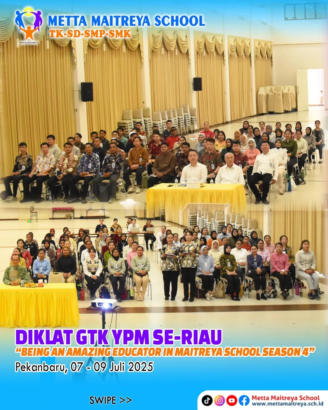 Yayasan Prajnamitra Maitreya menyelenggarakan Diklat dengan tema "Being an Amazing Educator Season 4" pada tanggal 07 s.d. 09 Juli 2025, diikuti oleh GTK dari berbagai sekolah Maitreya di Riau, yaitu Sekolah Dharma Maitreya (Bengkalis), Sekolah Metta Maitreya (Pekanbaru), Sekolah Kasih Maitreya (Selatpanjang), Sekolah Kasih Lestari (Tembilahan), Sekolah Maitreyawira (Dumai), Nava Dhammasekha Alam Bahagia (Rupat), dan Sekolah Paramita (Duri). Diklat ini penuh dengan pembelajaran, kolaborasi, dan semangat luar biasa untuk menjadi pendidik yang lebih baik. Para peserta mengikuti berbagai sesi inspiratif, mulai dari pemaparan materi, Quiz Time, Team Building Games, hingga membuat Project,