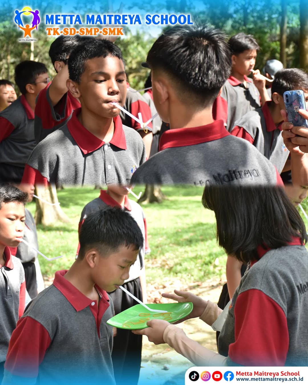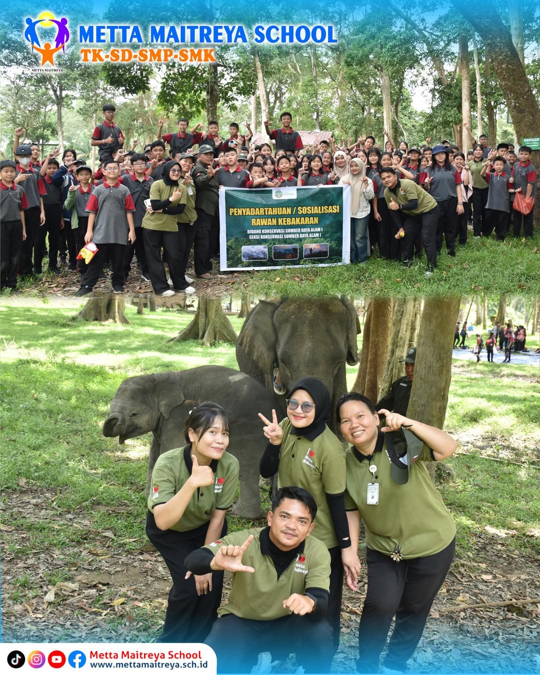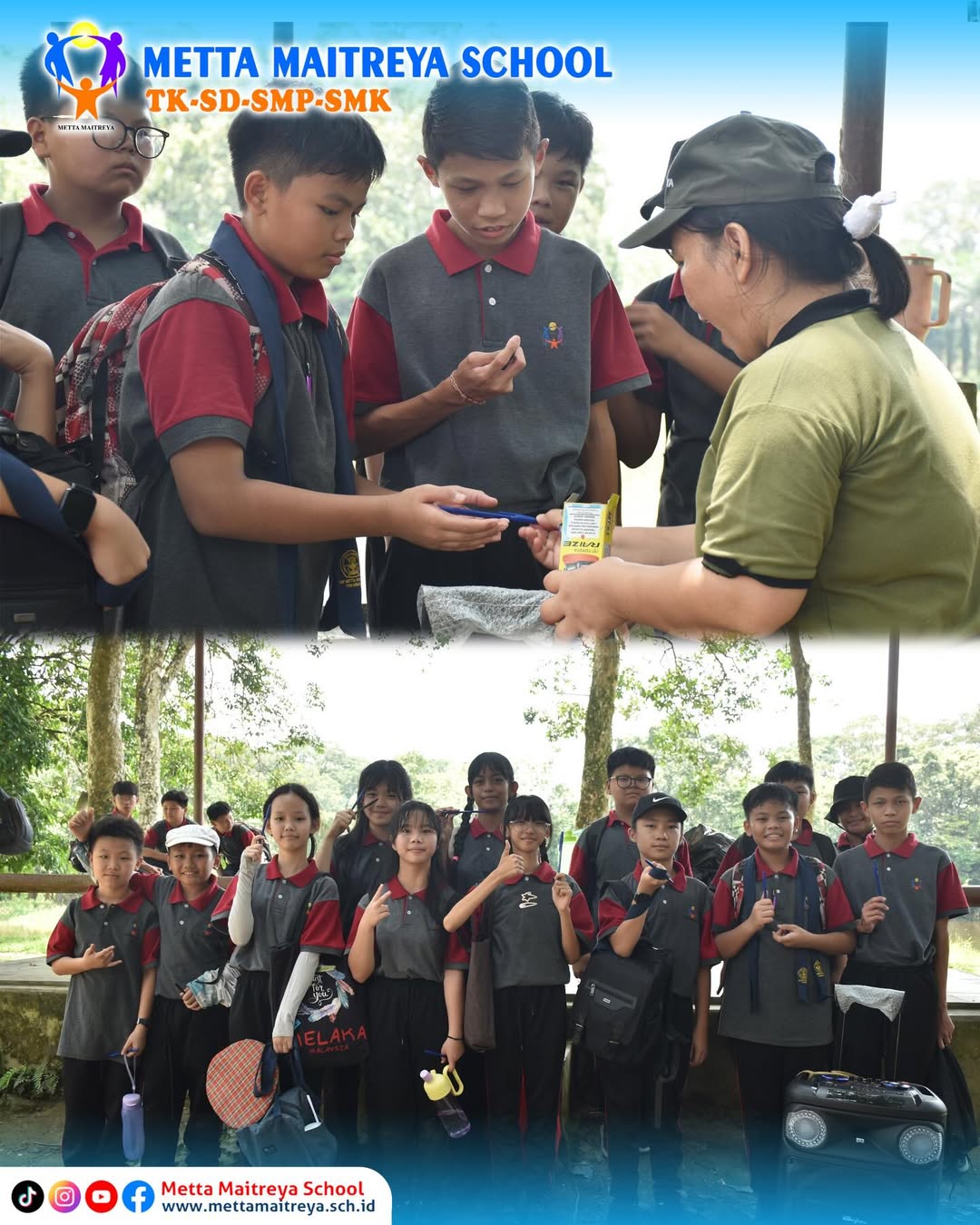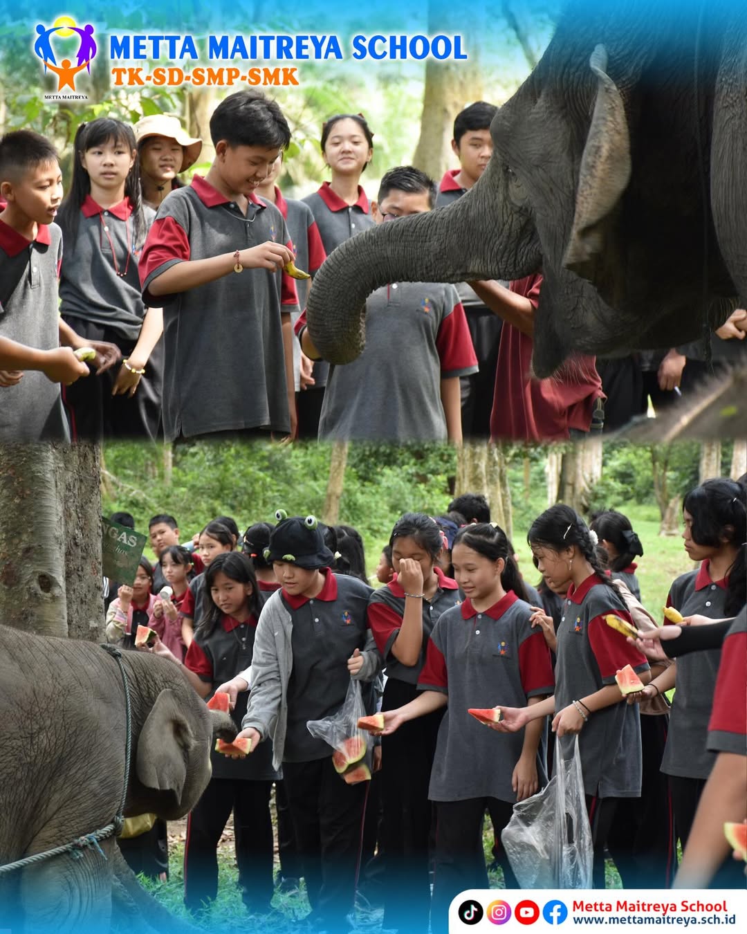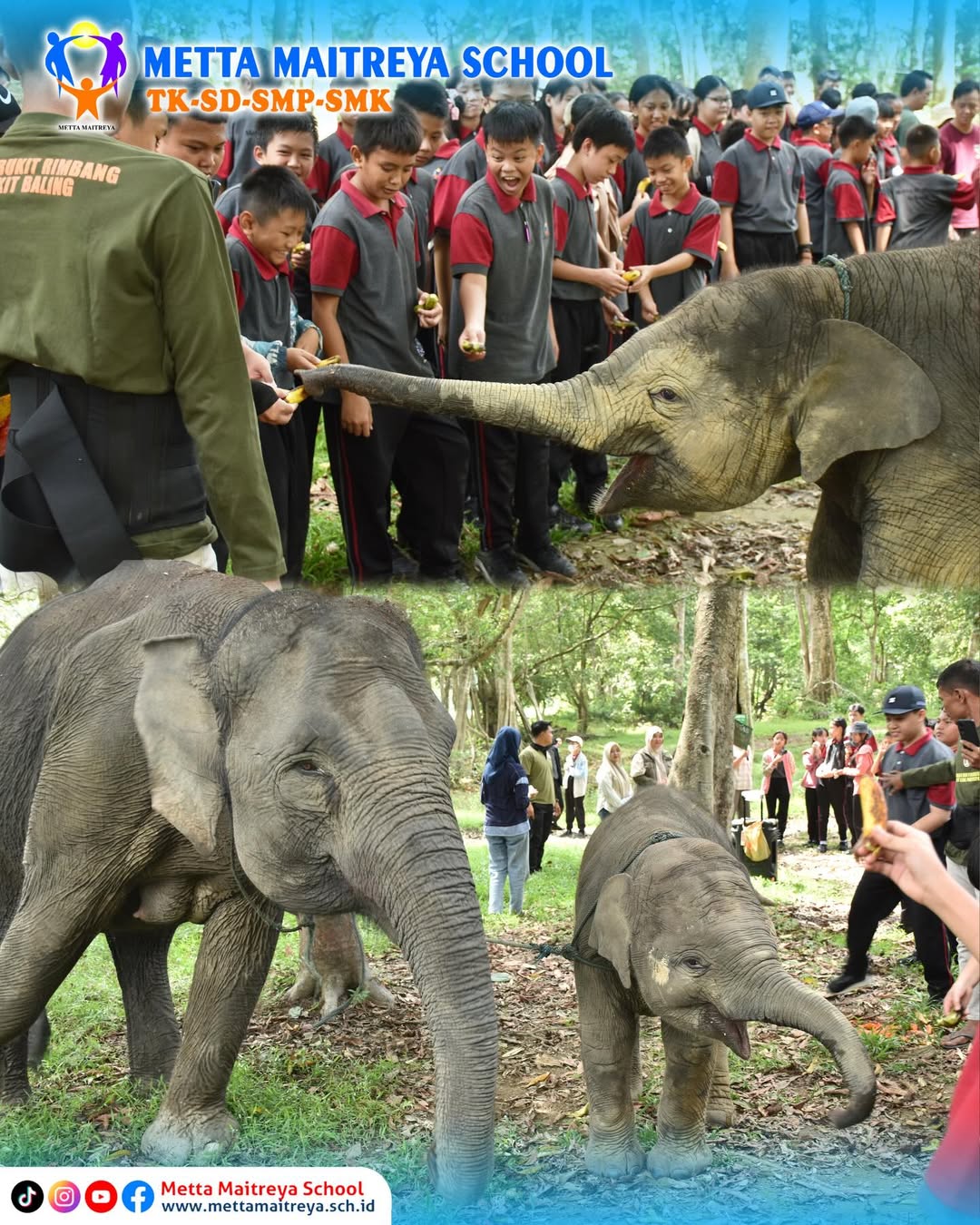 Murid Kelas VII SMP Metta Maitreya seru-seruan bareng di Taman Wisata Alam Buluh Cina. Selain menghirup udara segar, Murid Kelas VII juga belajar lebih dekat tentang alam dan bertemu dengan gajah yang menggemaskan ini.