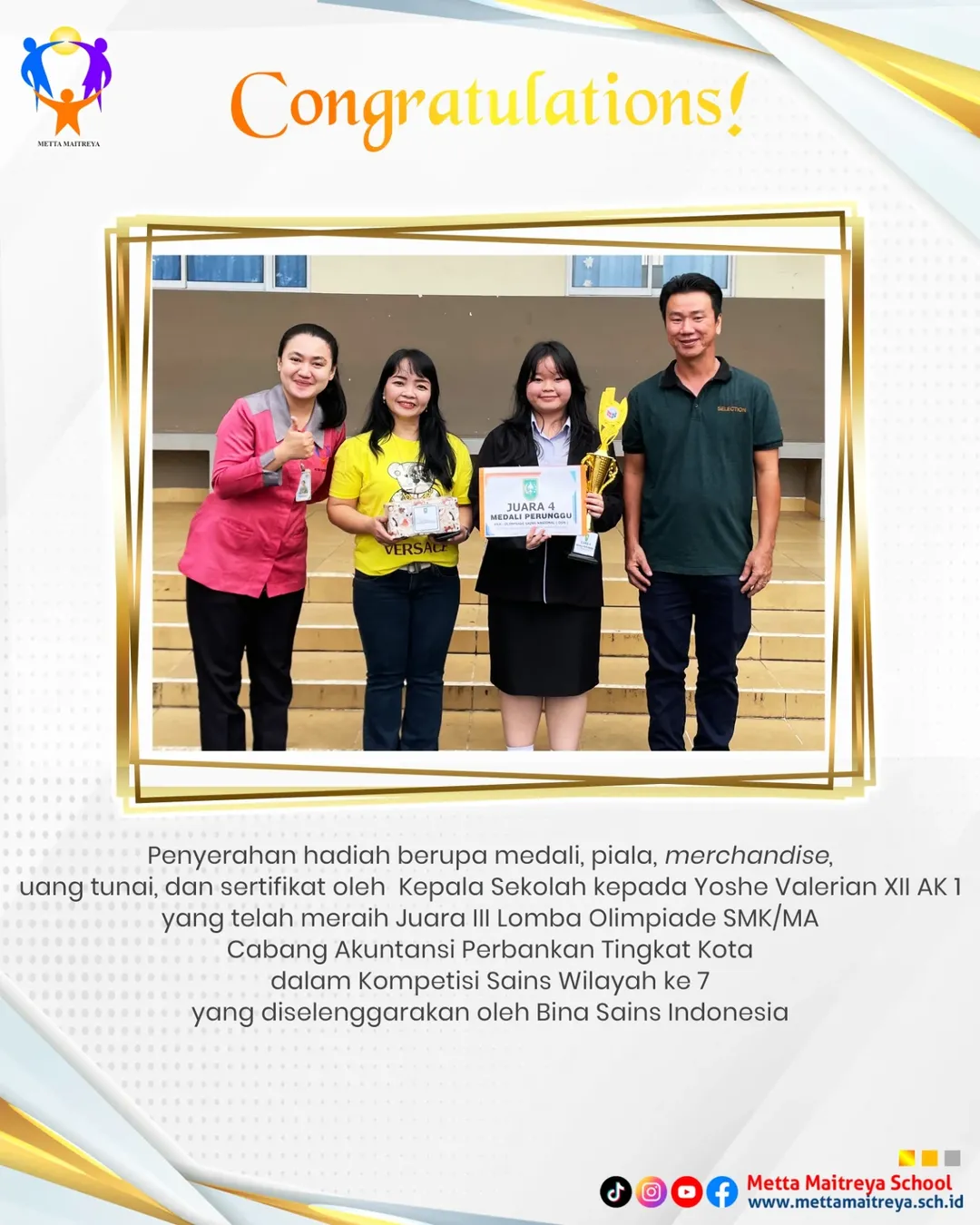 Prestasi Peserta Didik dalam Lomba Olimpiade SMK-MA Cabang Akuntansi Perbankan (1) | SMK METTA MAITREYA