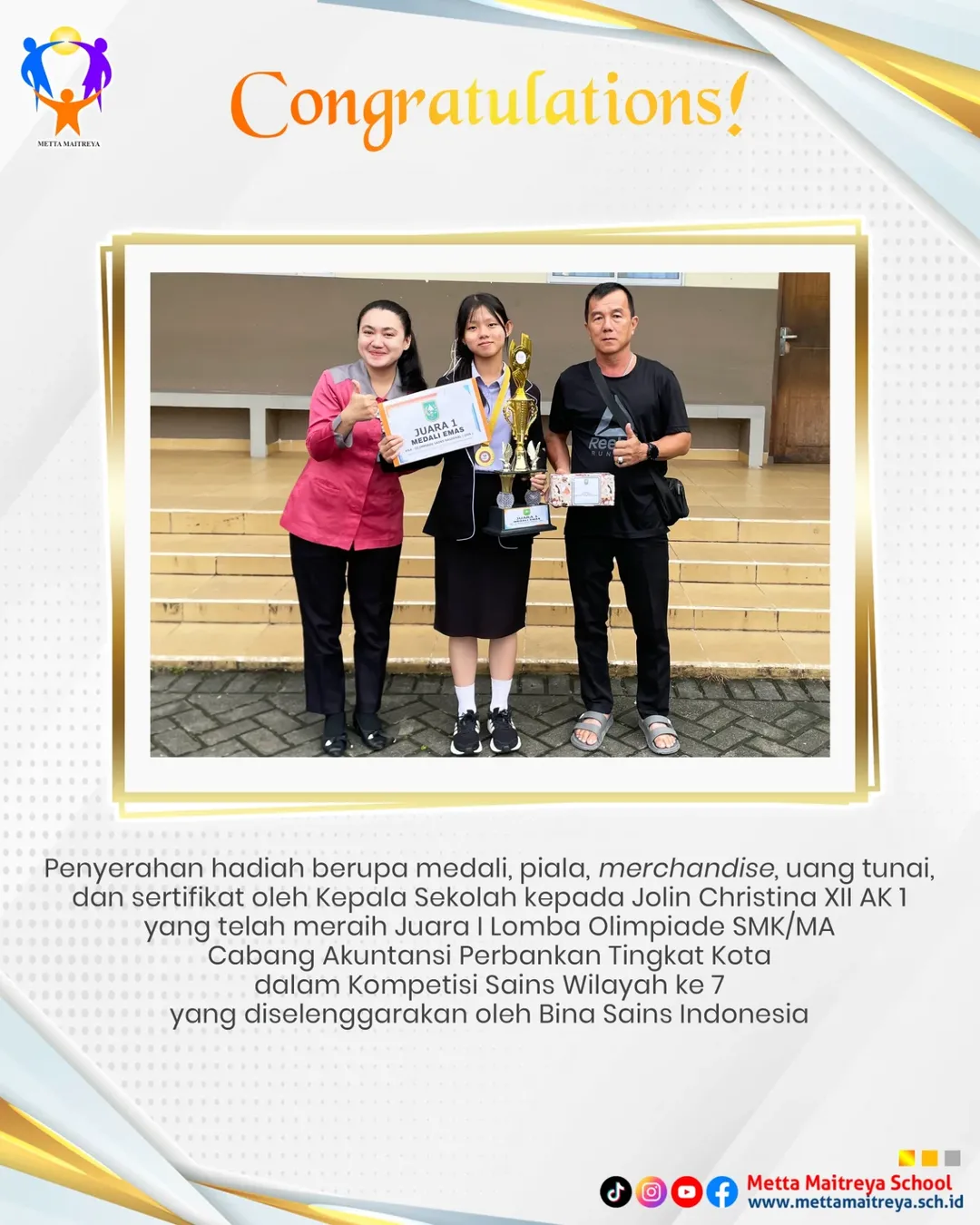 Prestasi Peserta Didik dalam Lomba Olimpiade SMK-MA Cabang Akuntansi Perbankan | SMK METTA MAITREYA