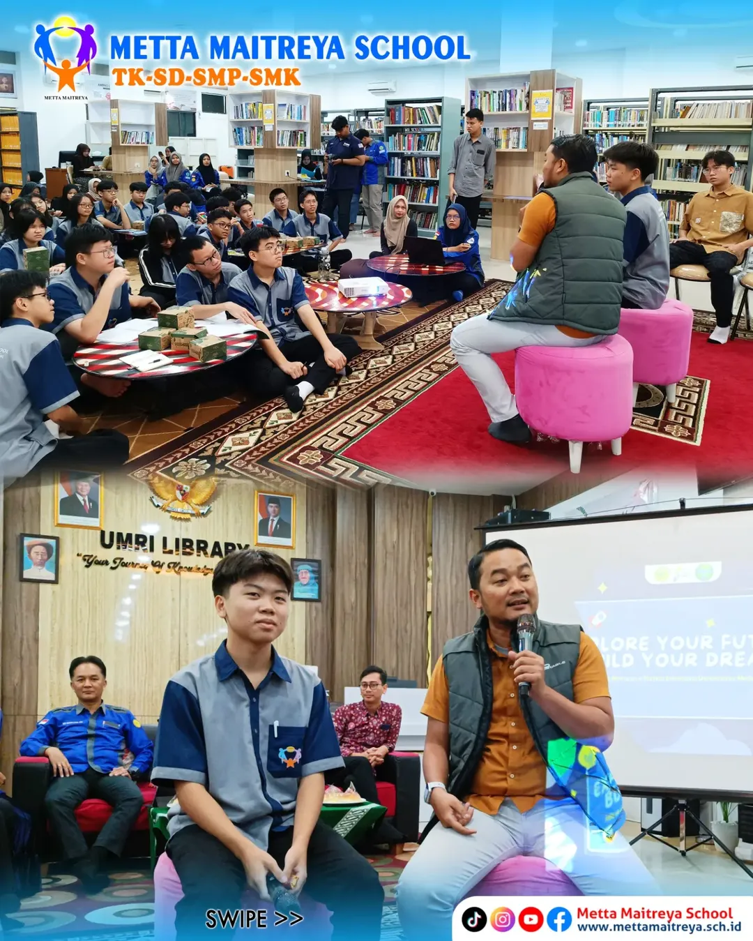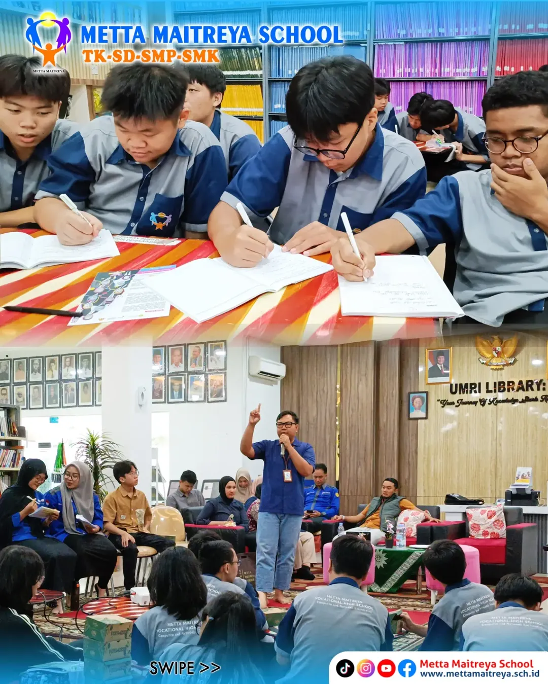 Murid-murid jurusan TKJ SMK Metta Maitreya mendapat pengalaman luar biasa mulai dari sesi interaktif di perpustakaan UMRI, hingga eksplorasi dunia Sistem Informasi, praktik langsung di laboratorium komputer.
