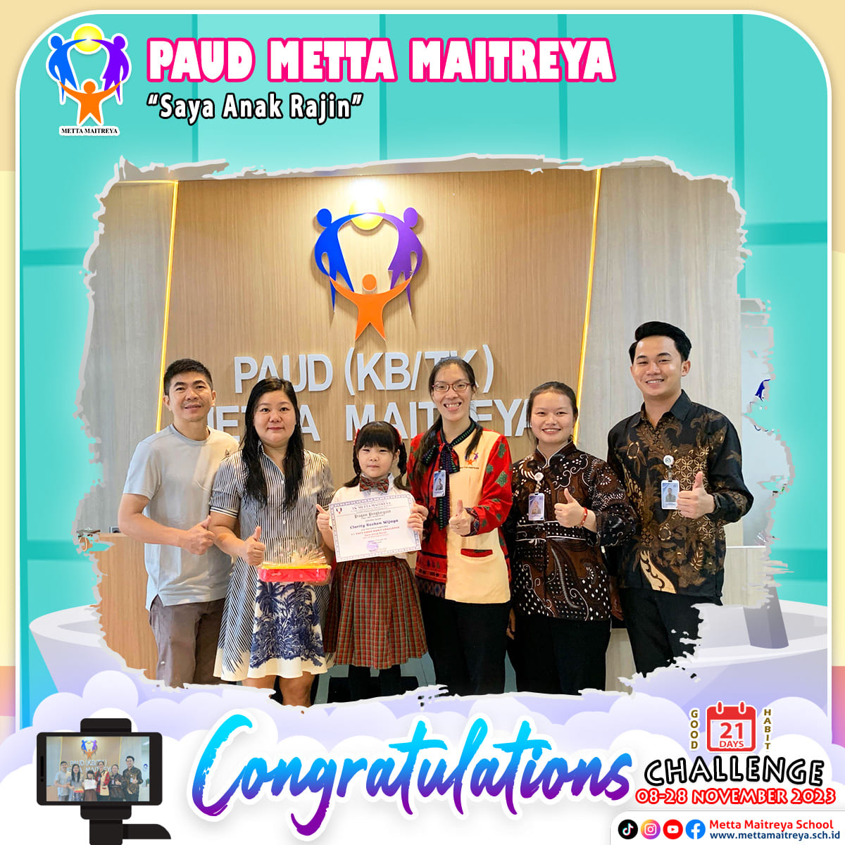 Penyerahan Piagam & Hadiah Challenge 21 Days Good & Healthy Habit Challenge bulan November 2023 | TK METTA MAITREYA