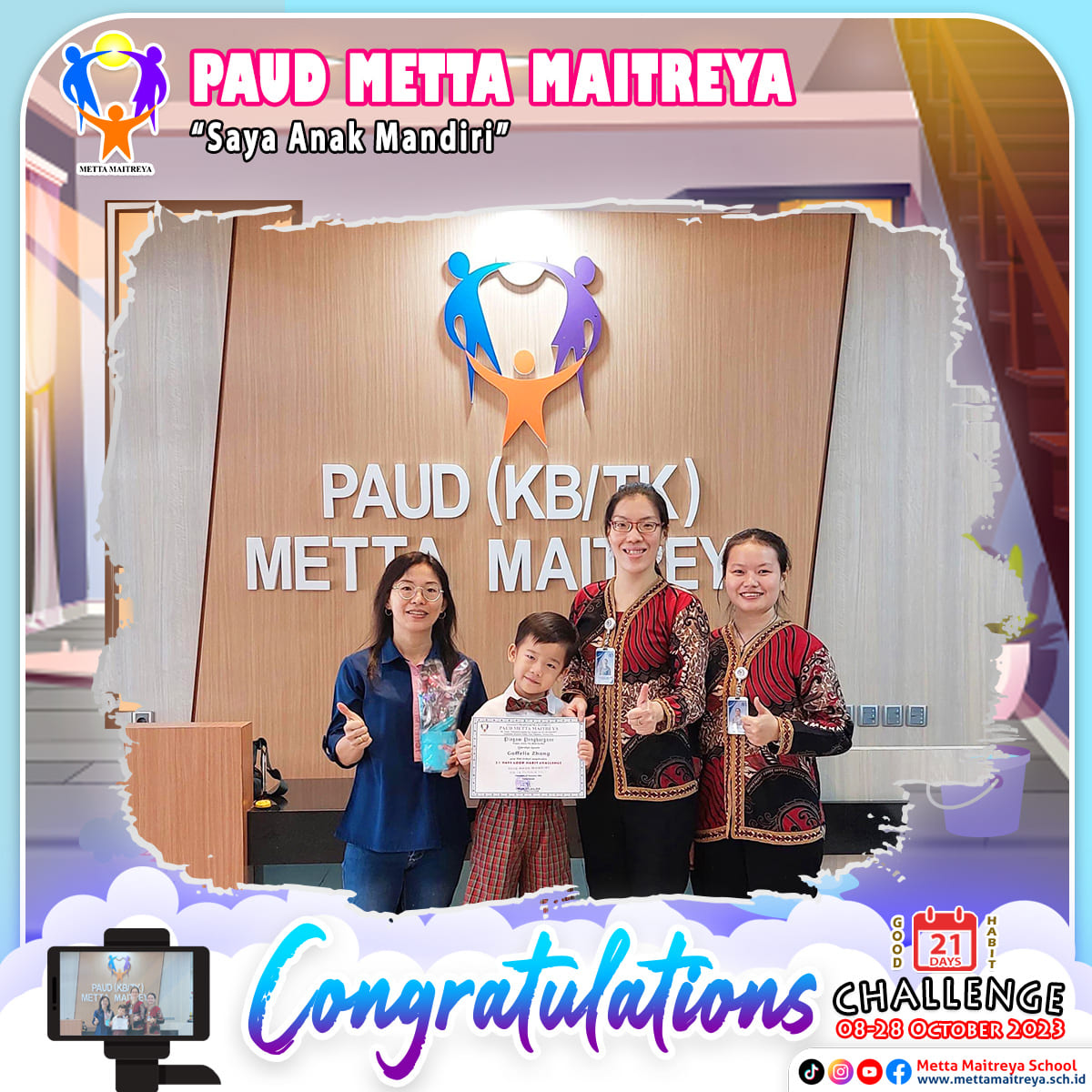 Penyerahan Piagam & Hadiah Challenge 21 Days Good & Healthy Habit Challenge bulan Oktober 2023 | TK METTA MAITREYA